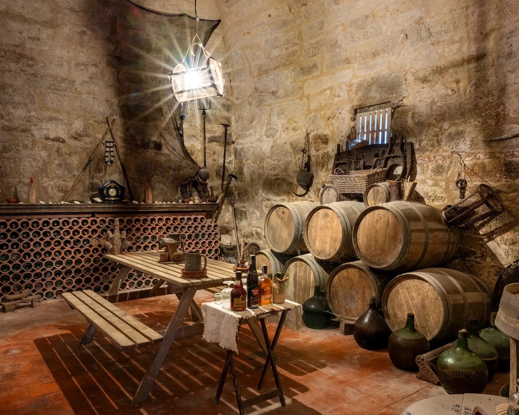 La forteresse comprend dix-sept embrasures et une surface d’environ 2 800 m². Autour de la cour d’armes se déploie un bâtiment en forme de U qui conserve des voûtes en berceau, des murs blanchis à la chaux et toute la solidité de l’architecture militaire traditionnelle. Aujourd’hui, la propriété est en parfait état pour y vivre et offre six chambres accueillantes, de vastes salons, des bureaux et des espaces polyvalents adaptés à de nombreux usages.