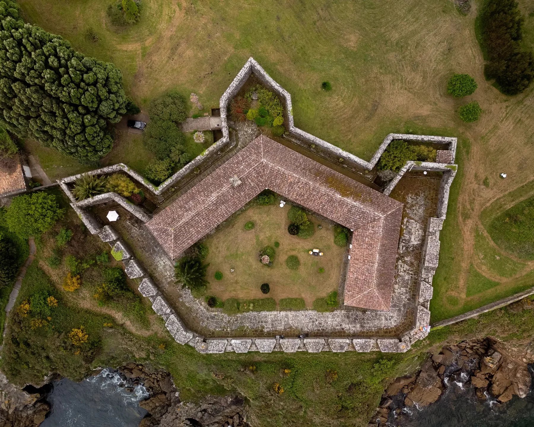 Construit entre 1755 et 1757 en l’honneur de l’Infant Don Luis de Borbón y Farnesio, frère du roi Charles III et grand mécène, le château fut conçu pour protéger la ría et les routes maritimes menant au nord de l’Europe. Son architecture répond à cette vocation stratégique : une péninsule fortifiée en forme d’étoile, réalisée en pierre locale et pensée pour s’intégrer au paysage.